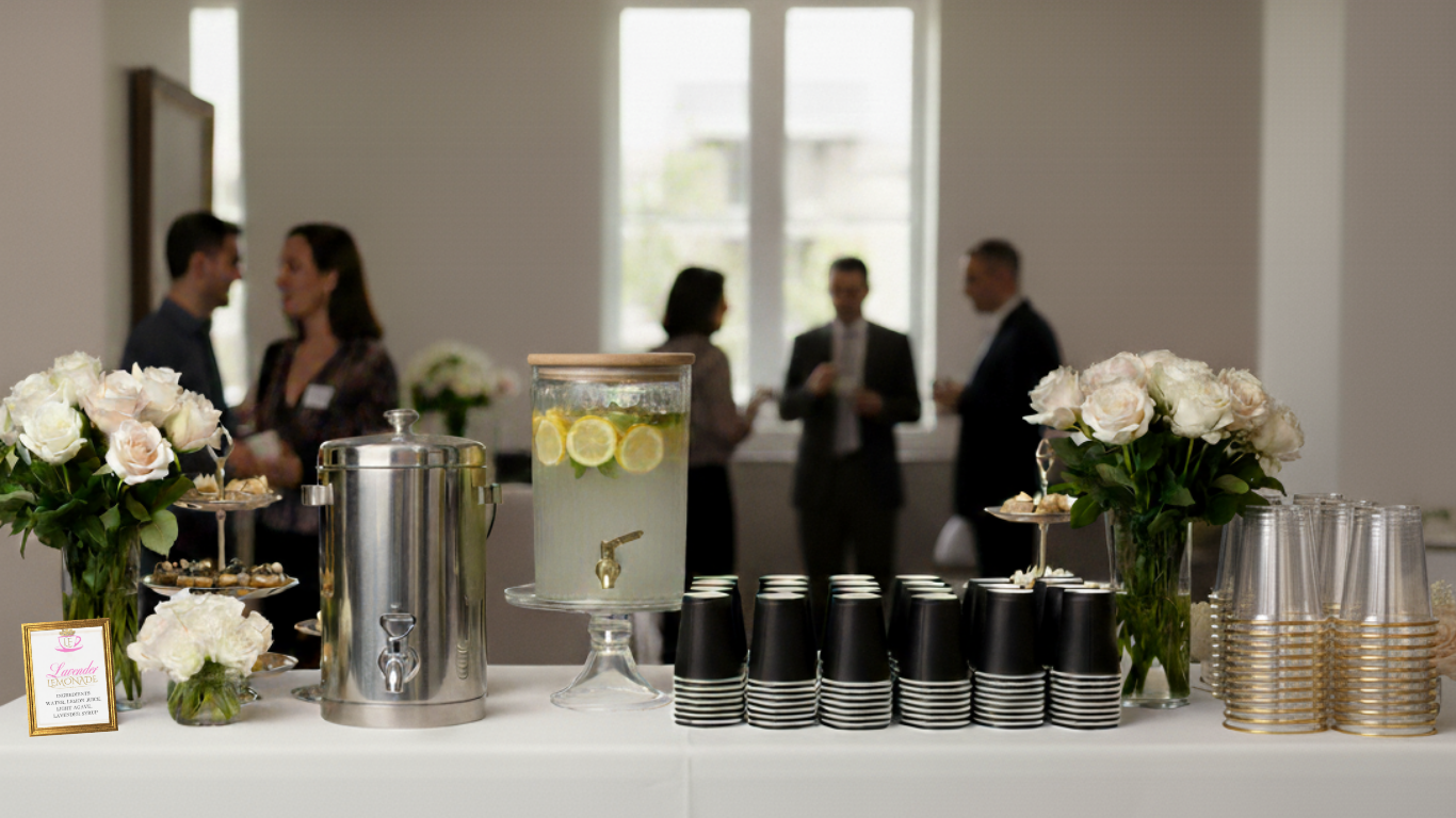 Enhance your event with LaFleur Coffee Boutique’s versatile catering services, perfect for corporate gatherings, brunches, and tea parties. Choose from a self-serve coffee and tea bar, a professionally staffed setup, or pre-made beverage selections in convenient sizes. A deposit is required for self-serve and professional setups, while pre-made selections require full payment upon booking.